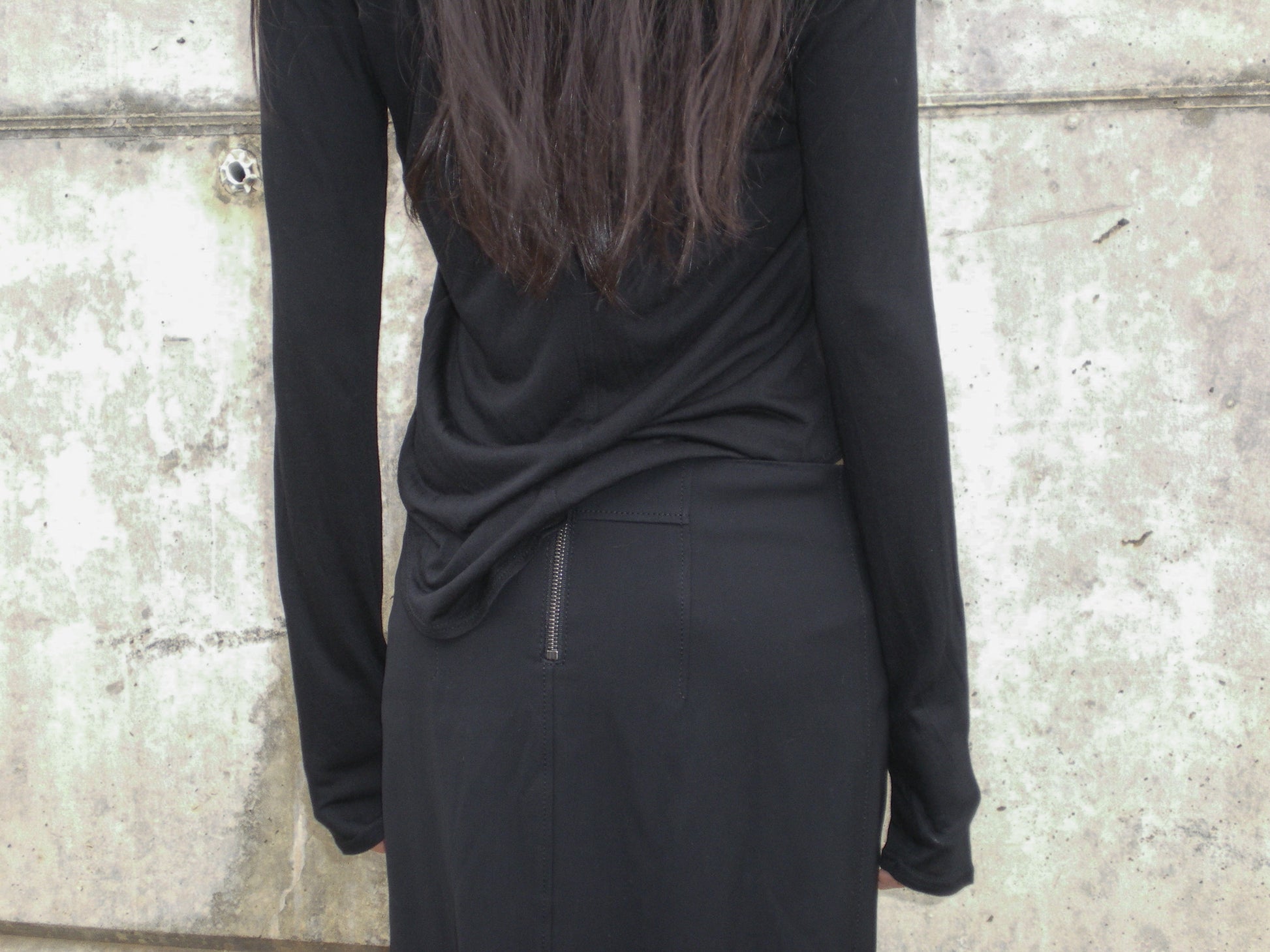 Helmut Lang classic midi pencil skirt. Minimalist silhouette, features detailed seam work. Finished with a back zipper closure.