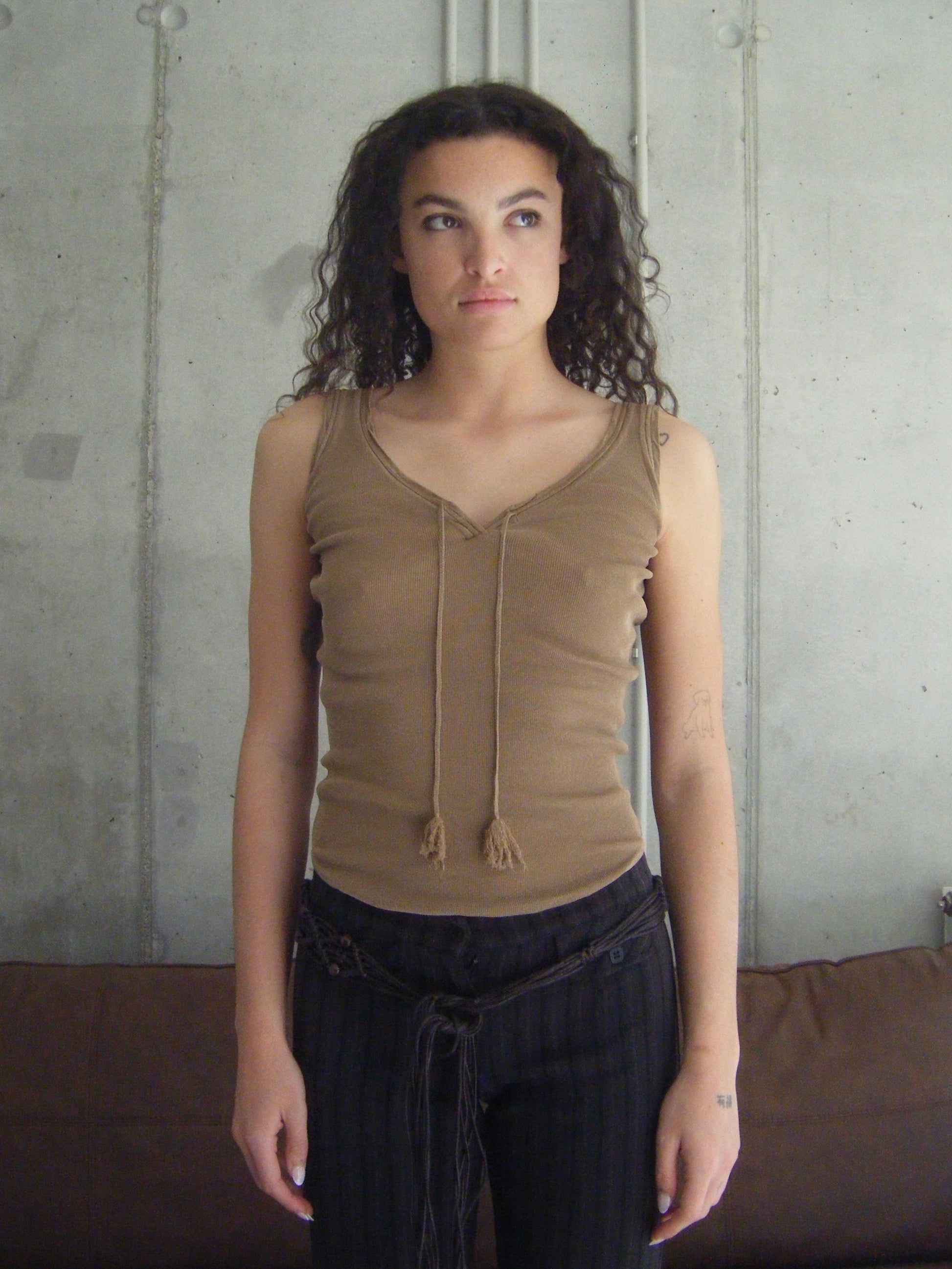 Chestnut brown vintage Roberto Verino top crafted from fine knit fabric that hugs the body for a flattering fit. Wide straps and deep round neckline with two delicate ties with playful pom-poms at the end. Fits sizes from XS to M. Brand is Roberto Verino. Condition is 4/5. Please note that all second-hand & vintage items may show signs of wear. Any significant imperfections will be specifically mentioned in the product description. We strive to provide accurate details about the condition of each item. |