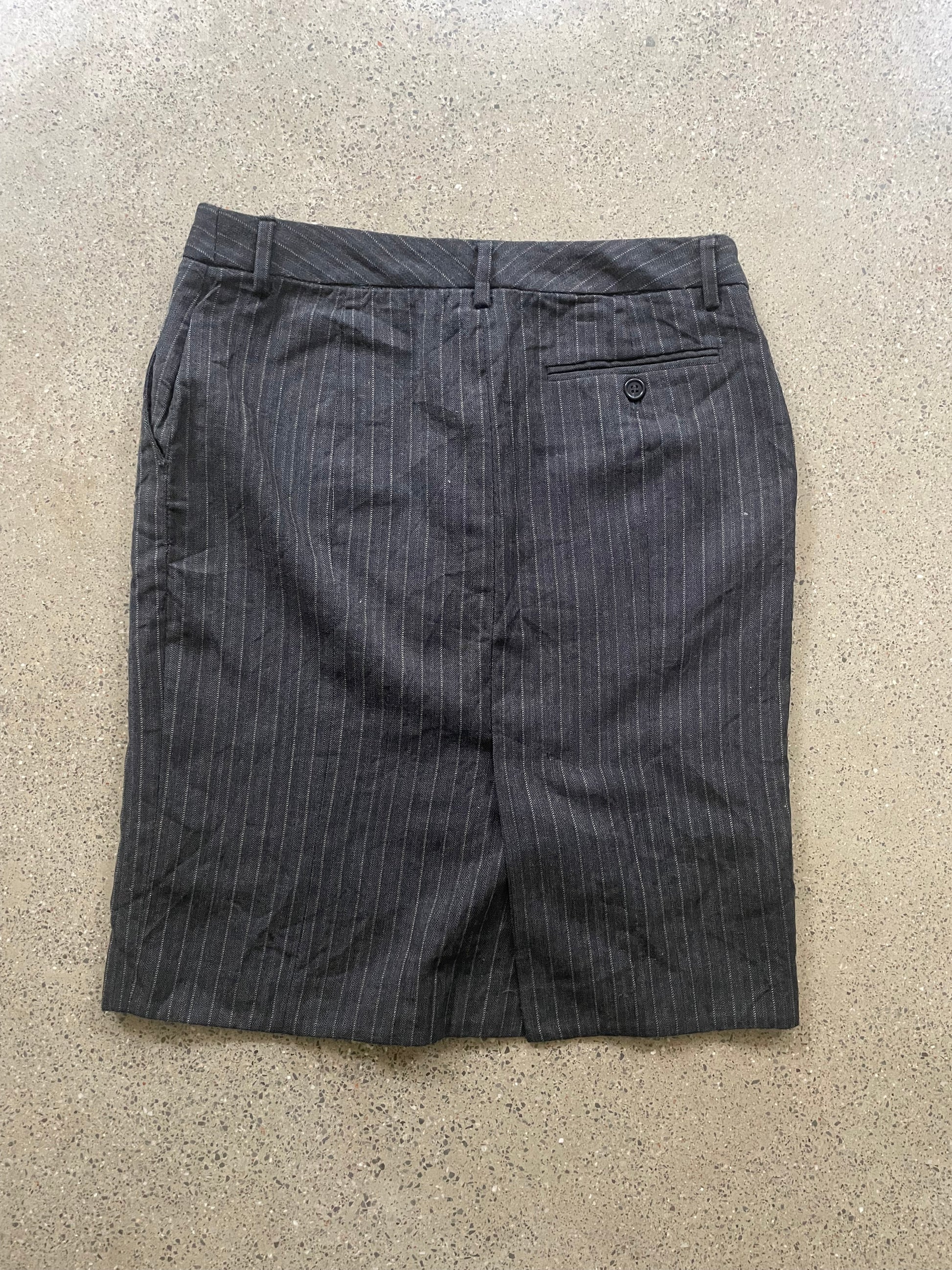 Straight-cut midi skirt in soft wool with a subtle striped pattern in muted tones.